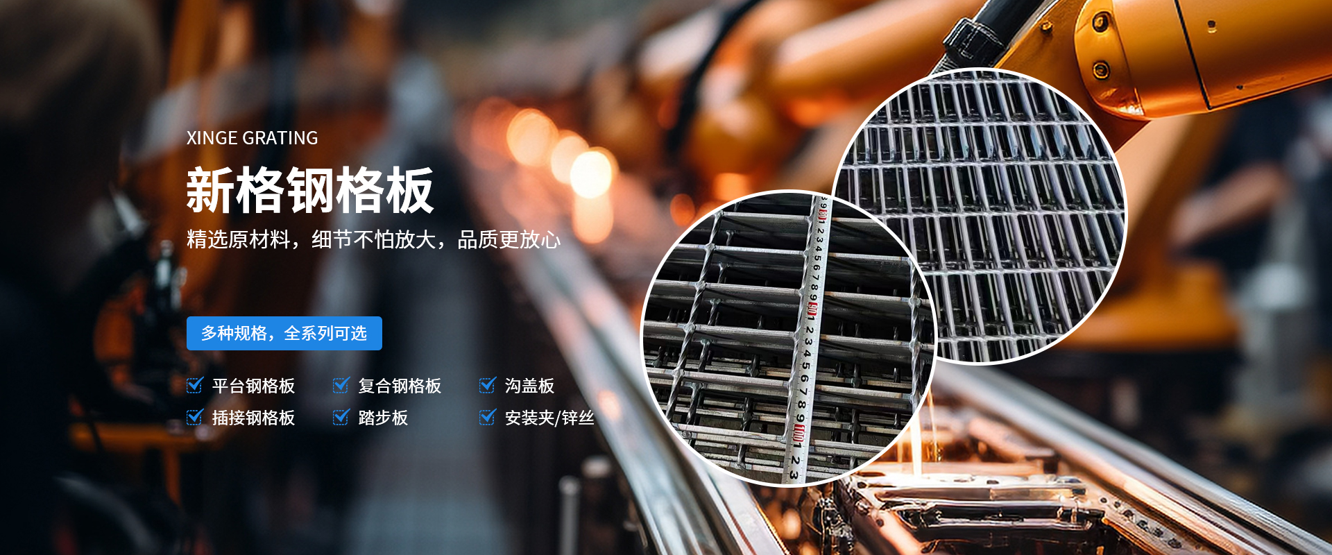 河南新格重工有限公司成立于2007年,占地36000余平方米,是河南省專注于鋼格板設計、制造、銷售的加工制造企業。公司一貫秉承“打造全國鋼格板基地”的企業理念,在“創新、務實、奉獻”的企業精神指引下,逐漸成長為一家具有現代化管理理念、優良的企業文化及靈活的經營機制的創新型加工制造企業?! 」静捎媚壳笆澜缟锨靶l的制造技術,由計算機控制的鋼格板壓阻焊機制造,機械手自動將橫桿橫放在均勻排列的扁鋼上,通過強大的電焊功率和液壓力將橫桿壓焊入扁鋼內,從而得到焊點固定、穩定性高、強度大的高質量鋼格板。公司擁有成熟的CAD設計、制造技術以及優良的工程設施經驗,獨立自主的進出口貿易資質,通過ISO9001資質體系認證。所生產的鋼格板系列產品從外觀質量、尺寸公差、焊接質量等方面均滿足客戶的需求。公司可按中國鋼格板YB/T4001.1-2007標準生產,也可按符合美國ANSI/NAAMM(MBG531-88)、英國BS4592-1987、澳大利亞AS1657-1985等標準進行生產。產品暢銷全國三十多個省、市、自治區,并有部分產品出口到國外,給上百家大型企業提供了堅實可靠的服務,得到了廣大用戶的一致肯定?! 」臼冀K堅持“視品質為生命,視顧客為上帝”的經營宗旨,依托成熟的技術力量及良好的企業信譽,竭誠為廣大用戶提供高質量的產品及全方面的售前、售中、售后服務?! ∥覀內w新格人將帶著真誠的期望,一如既往地以具有競爭力的價格、高質量的產品為工程項目提供盡善盡美的服務,并希望與用戶單位建立長久有好的合作伙伴關系!